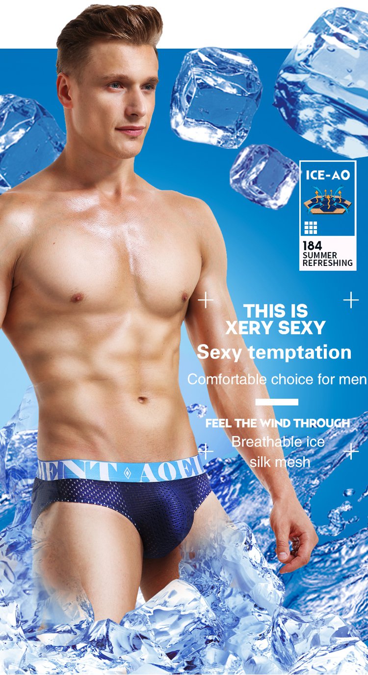 ¡Ropa interior de seda de hielo de bolsa u para hombres, diseño de letras anchas, más de moda, con tela de malla transpirable, sin sudar, con moléculas de seda de hielo, más fresca y cómoda, entrepierna interior de una sola capa, transpirable para la piel, buena elasticidad!