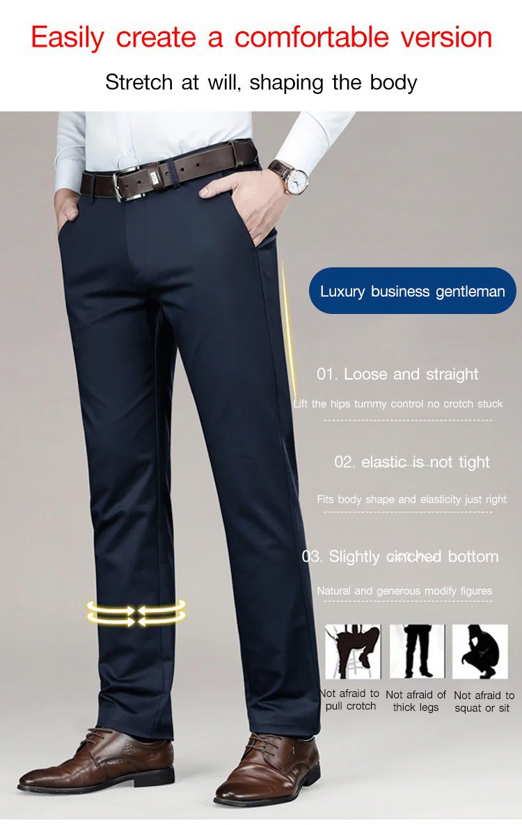 [M-Ropa] Pantalón De Traje Clásico Antiarrugas De Seda De Hielo