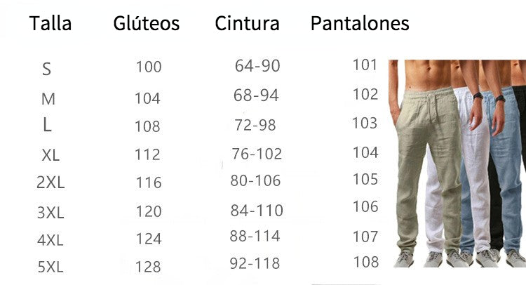 [M-Ropa] Pantalones De Lino De Color Sólido Respirables Para Hombres En Verano