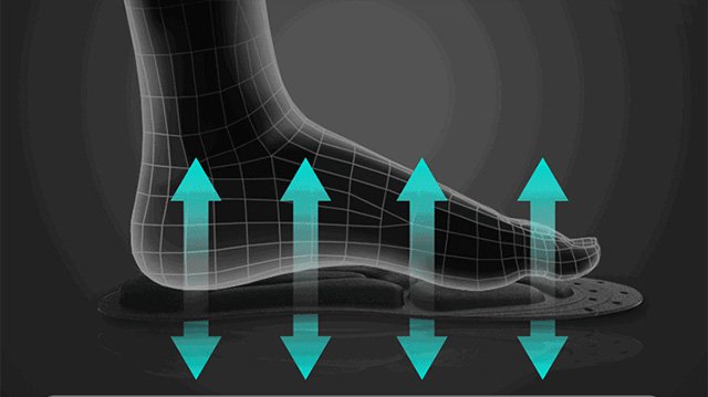 Distribución uniforme de la presión: nuestros tres soportes de arco están diseñados para asegurar que el peso se distribuya uniformemente entre los dedos, arcos y pies.