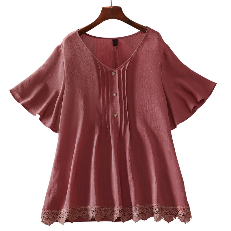 [W-Ropa] Camisa Holgada De Talla Grande De Manga Corta De Color Sólido Cómoda Personalizada 2022