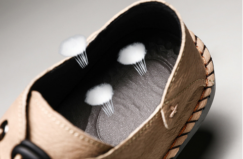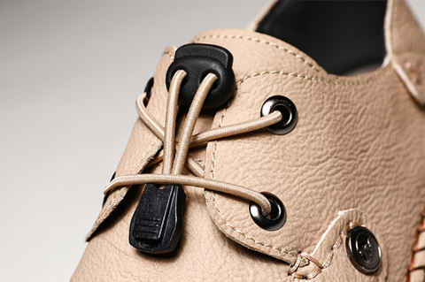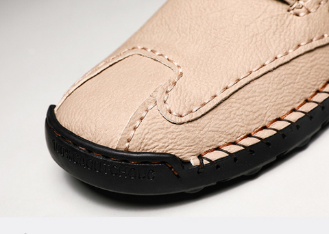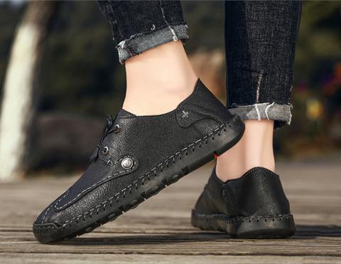 Menico Zapatos casuales de encaje elástico antideslizante de cuero cosido a mano para hombre