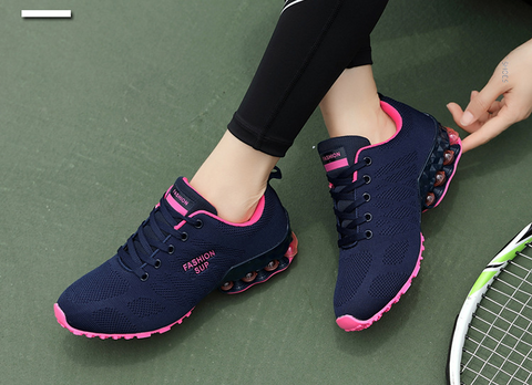Mujer Zapatillas de deporte gruesas con cordones transpirables huecos cómodos