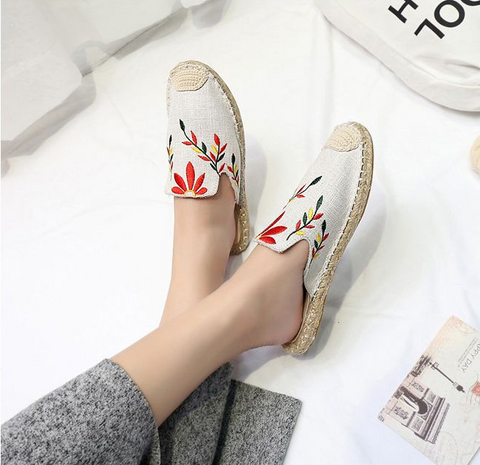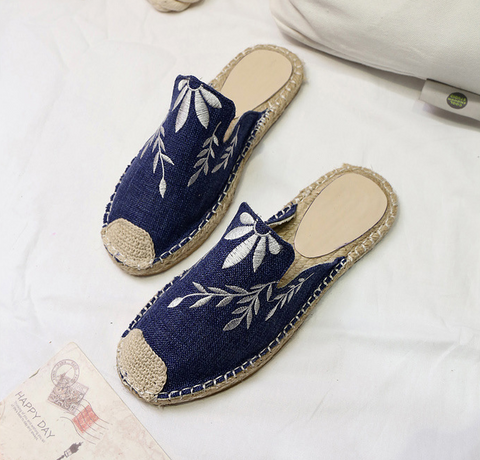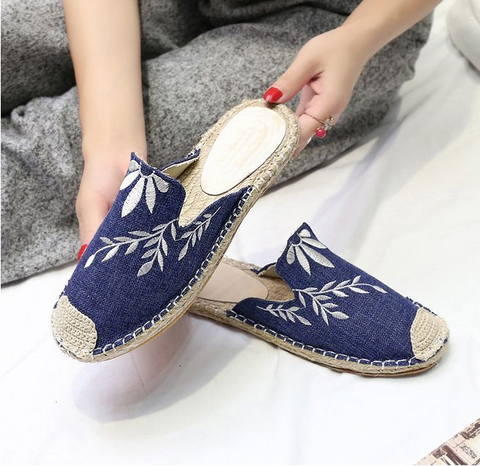 Mujeres moda bordado alpargata plano pantuflas zapatos