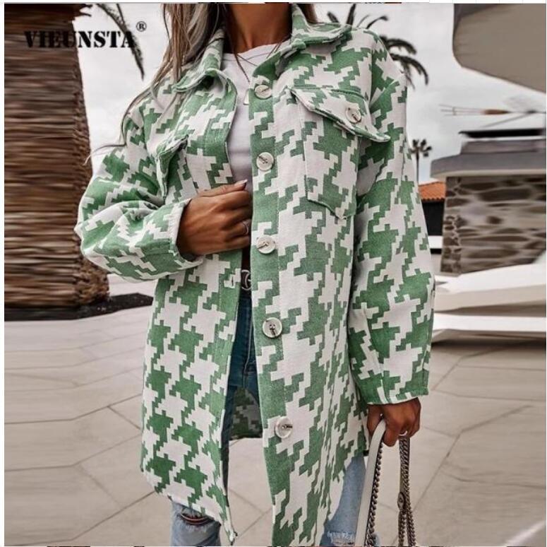 Nuevo Abrigo Suelto De Lana De Pata De Gallo De Manga Larga De Otoño E Invierno