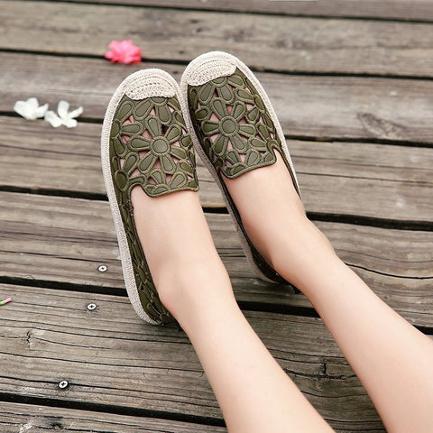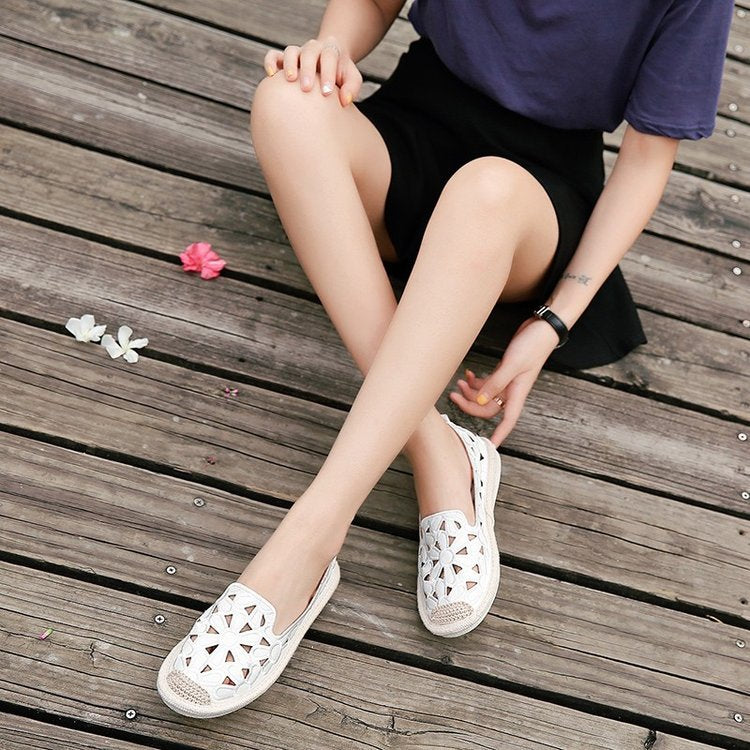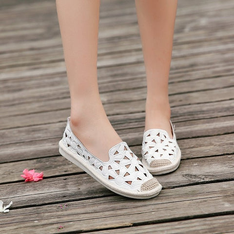 Nuevos zapatos planos de pescador de lino y paja