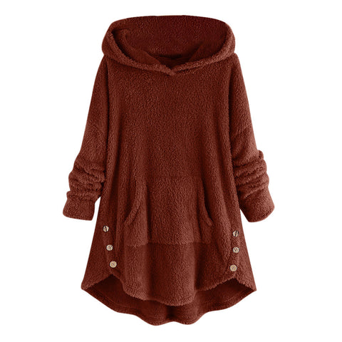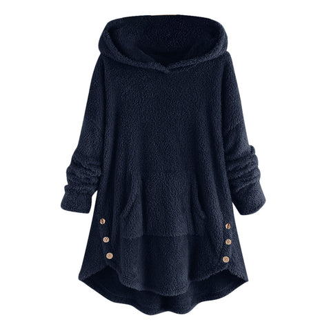 Sudaderas con capucha de gran tamaño para mujer camisetas tops Botón asimétrico
