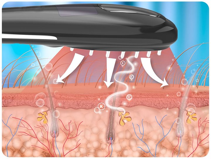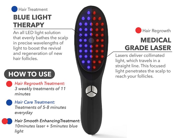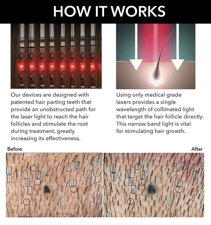 Nuestros láseres proporcionan luz colimada que viaja en línea recta. Esta luz enfocada penetra en el cuero cabelludo hasta los folículos pilosos. Aumentar la circulación sanguínea, proporcionar más vitaminas, nutrientes y oxígeno directamente a los folículos pilosos, promover el crecimiento. También ayuda a eliminar desechos como dht, la principal causa de pérdida de cabello.