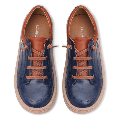 Retro Lace Up Front Soft Zapatos planos cómodos con costuras para Mujer