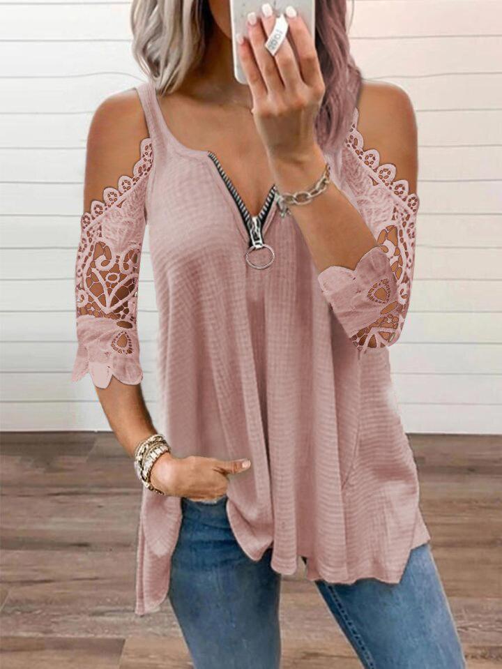 Si te gusta un estilo informal y elegante, opta por nuestra blusa de encaje con hombros descubiertos que se ve totalmente increíble y audaz.