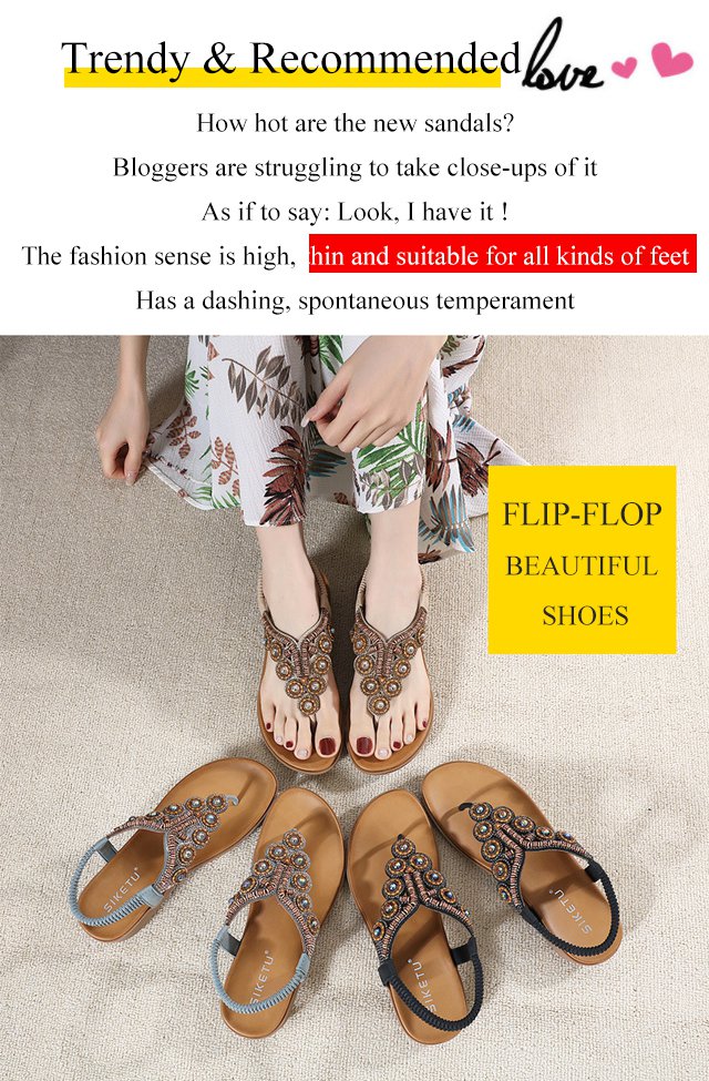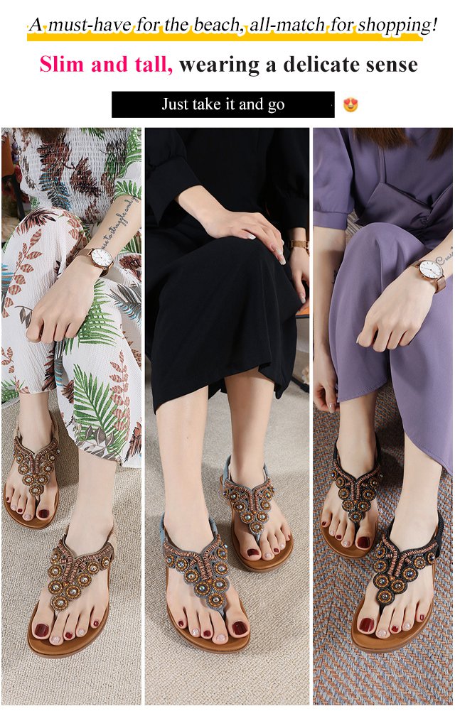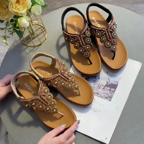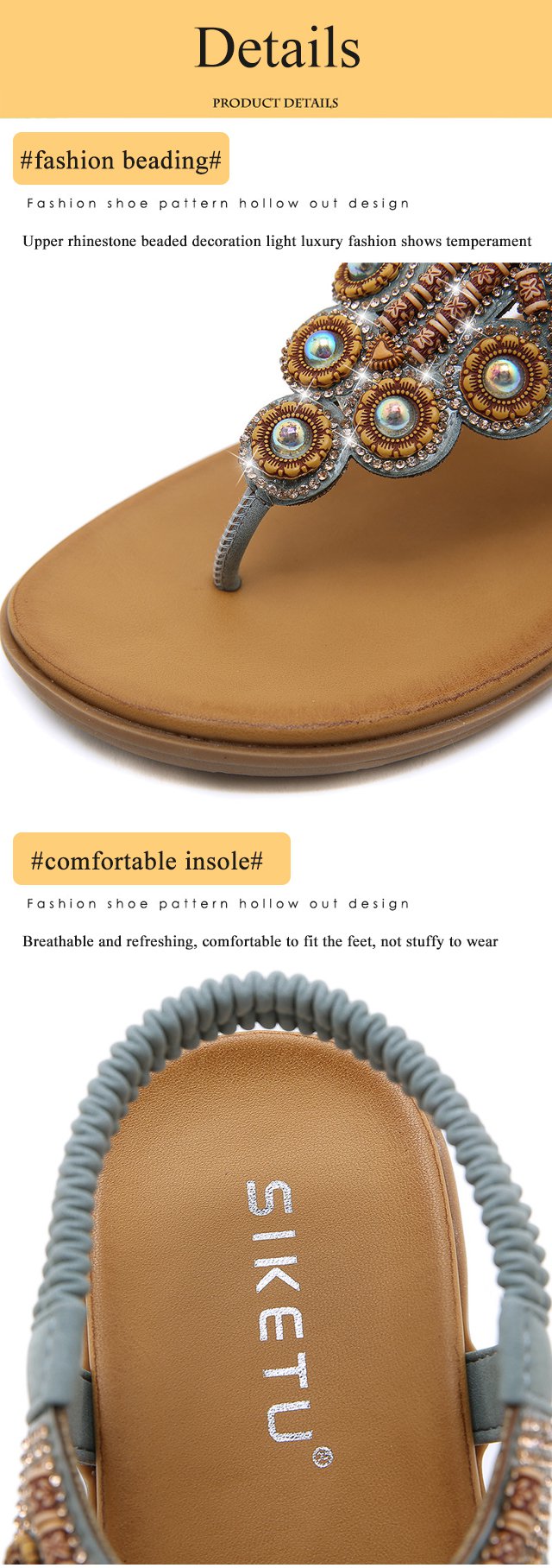 [W-Zapato] Sandalias Con Hebilla De Strass Y Cuentas