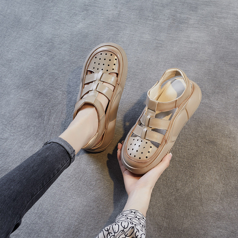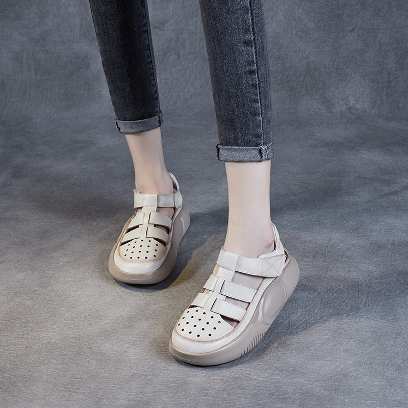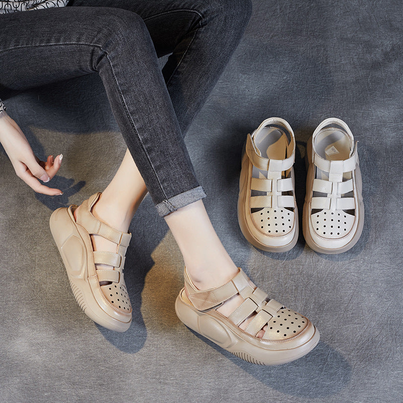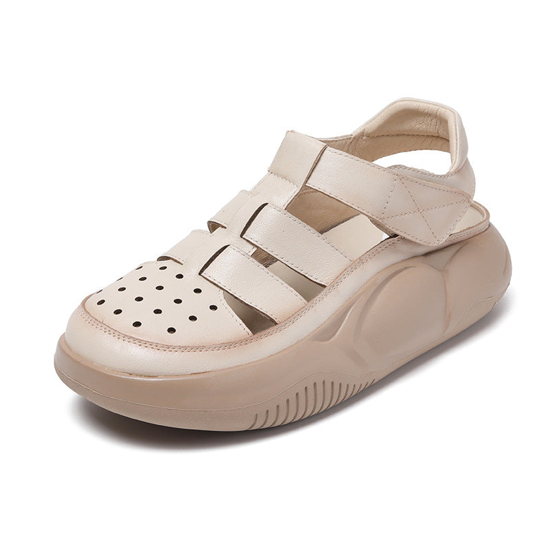 Sandalias De Cuero Con Suela Plana Y Cabeza Redonda En Baotou