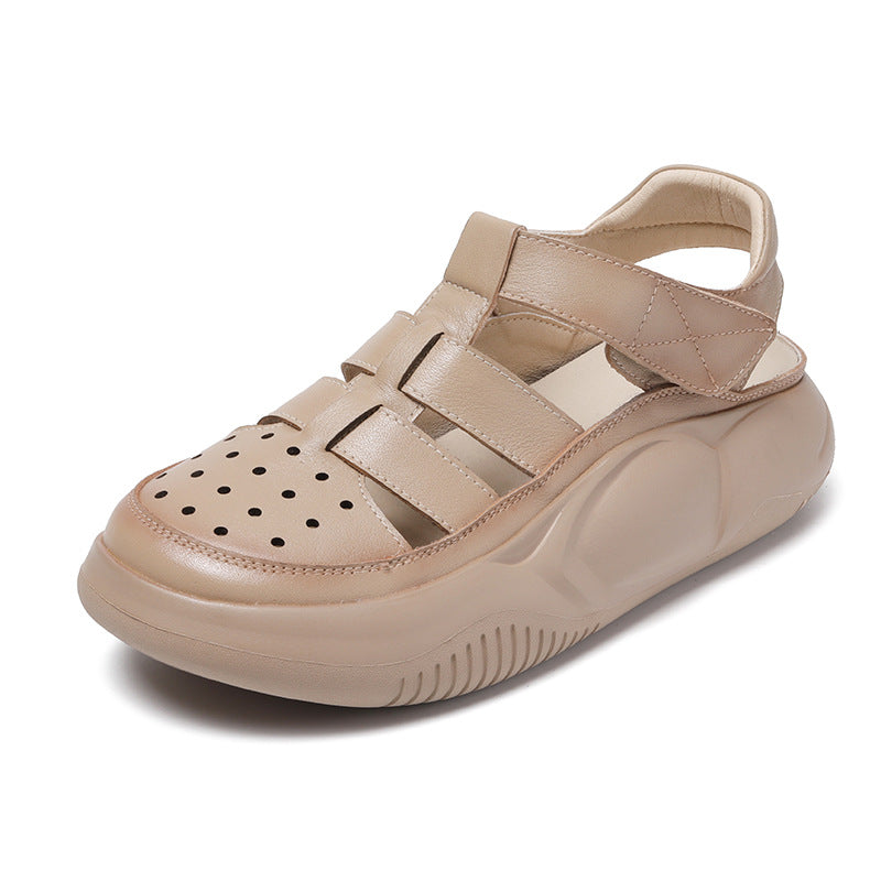 Sandalias De Cuero Con Suela Plana Y Cabeza Redonda En Baotou