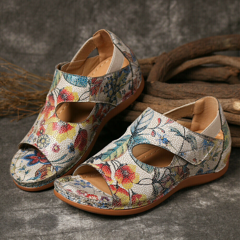Sandalias De Verano Con Estampado De Flores De Lazo De Gancho