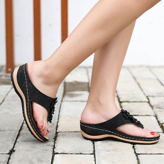 Las sandalias ortopédicas FleekComfy ™ Premium de cuña con clip de flores y puntera están especialmente desarrolladas, diseñadas por FLEEK TEAM, con un diseño de soporte de tres arcos y una suela suave para mantener tus pies cómodos, saludables y con estilo.