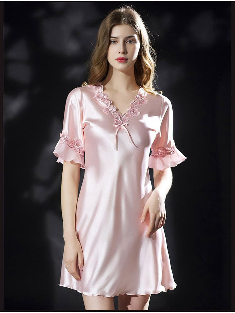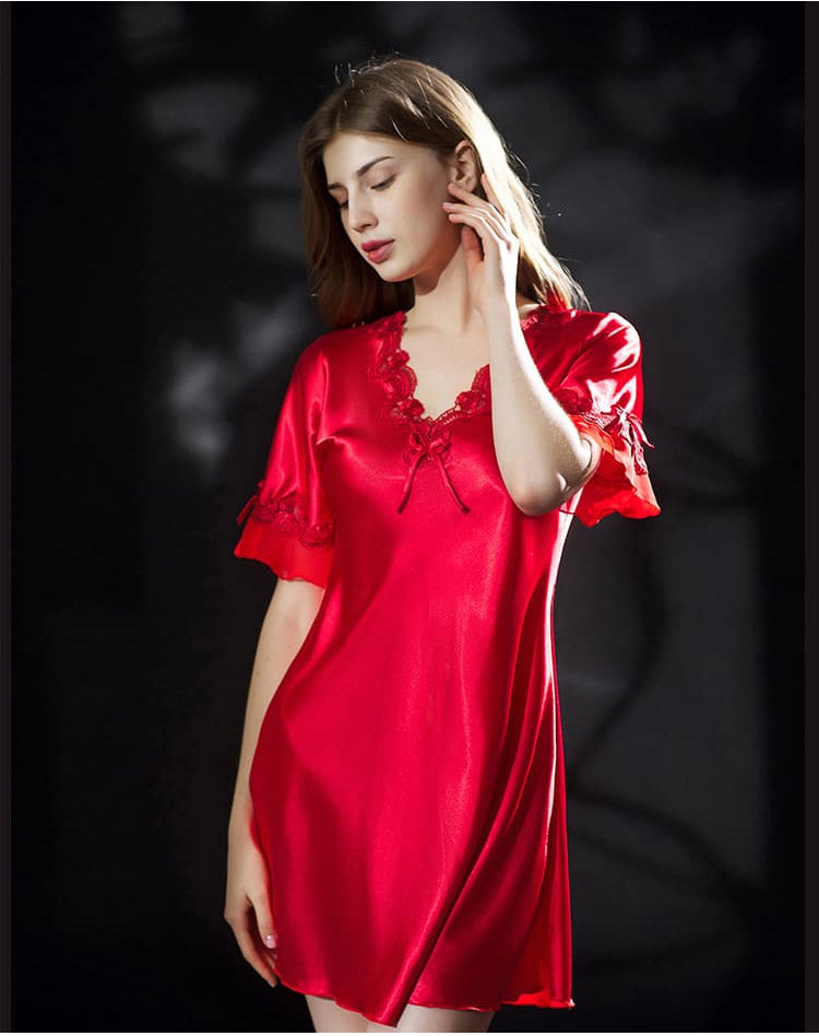 Sexy Ropa De Casa De Manga Corta De Seda De Hielo