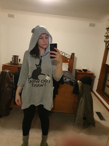 SUDADERA CON CAPUCHA DE GRAN TAMAÑO CON OREJAS DE GATO