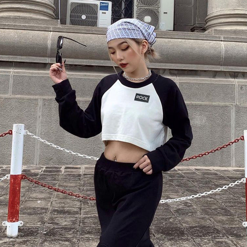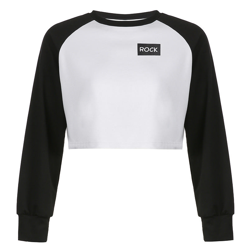 Suéter Corto Holgado Con Manga Raglán Simple En Blanco Y Negro