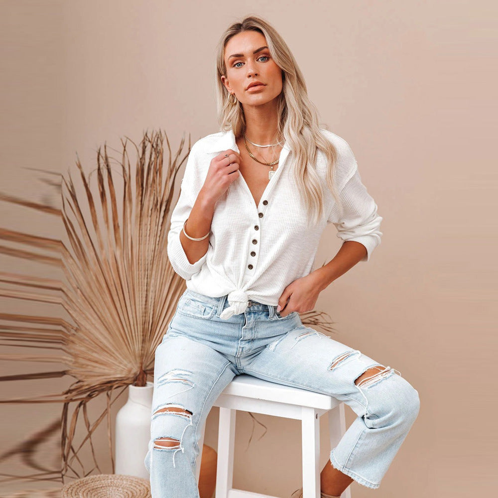 Suéter De Punto De Color Puro Para Mujer 2021 Invierno Nuevo Top De Manga Larga Con Un Solo Pecho