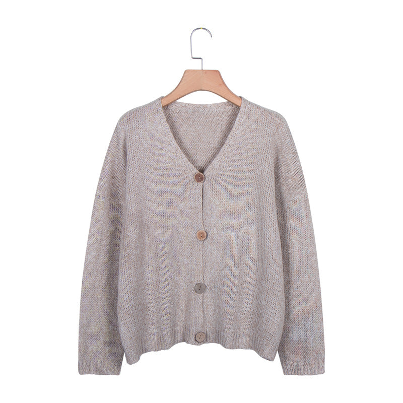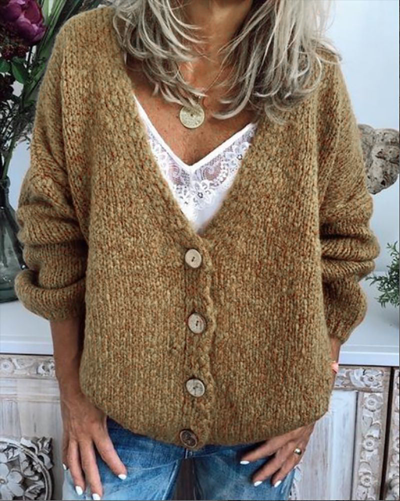 Suéter De Punto Superior Abotonado Casual Con Cuello En V Suéter Suelto De Manga Larga Mujer