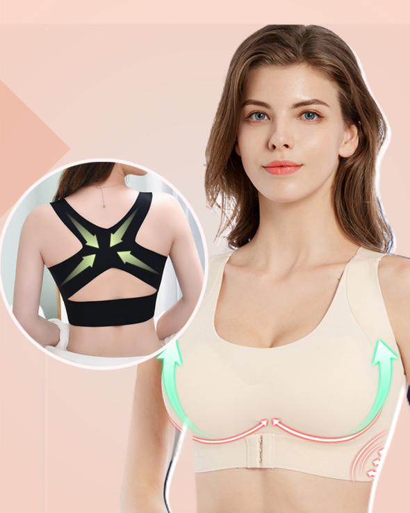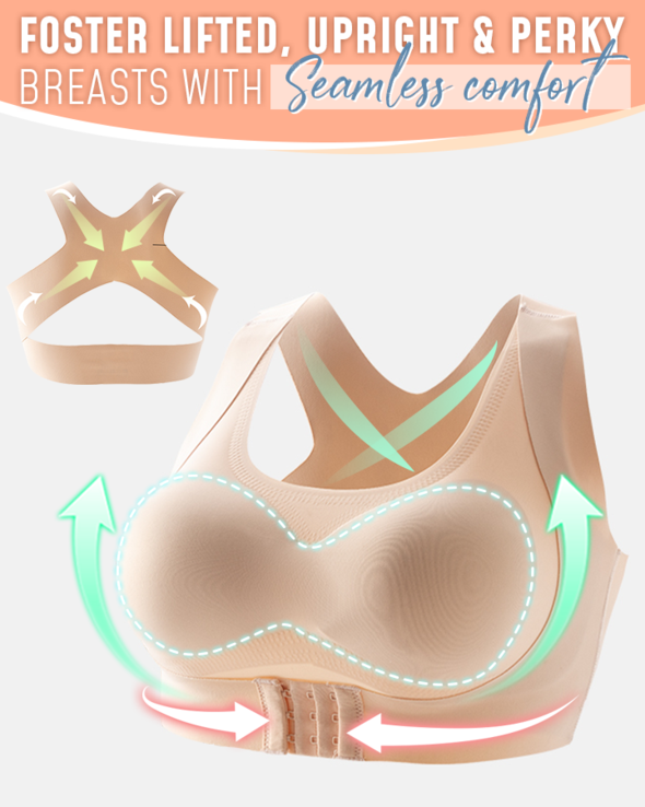 El sujetador de soporte con hebilla frontal sin costuras levanta y sostiene los senos caídos, con un gancho y ojo de hebilla frontal ajustable y una correa trasera entrecruzada para un excelente efecto de flexión y corrección de la postura.