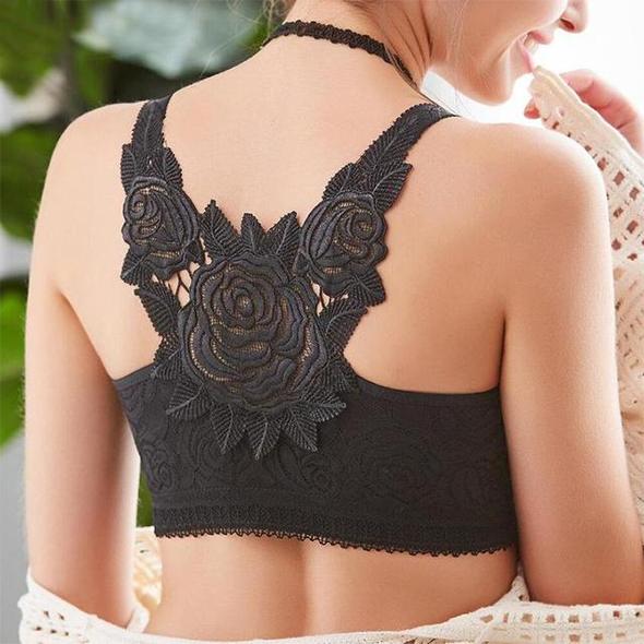 š„Sujetador Sin Cables Con Cierre Frontal Con Bordado De Rosas