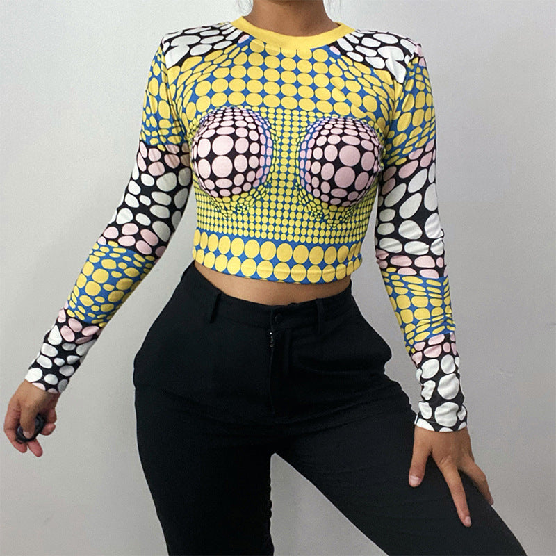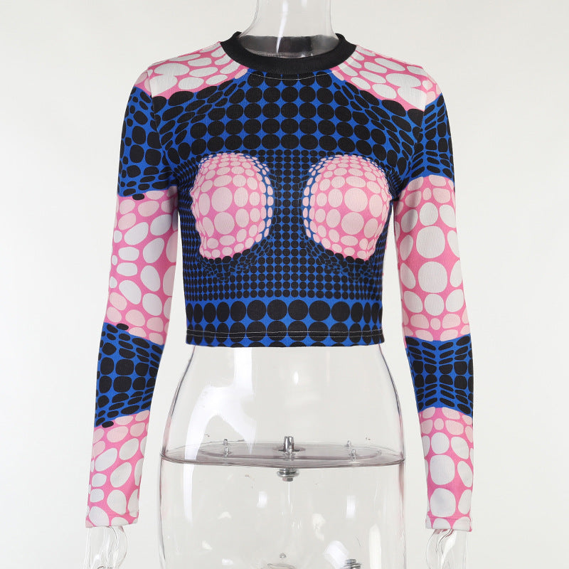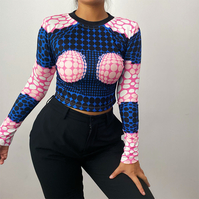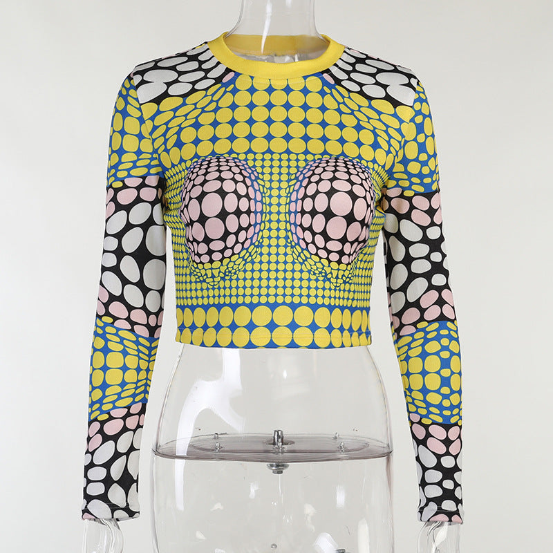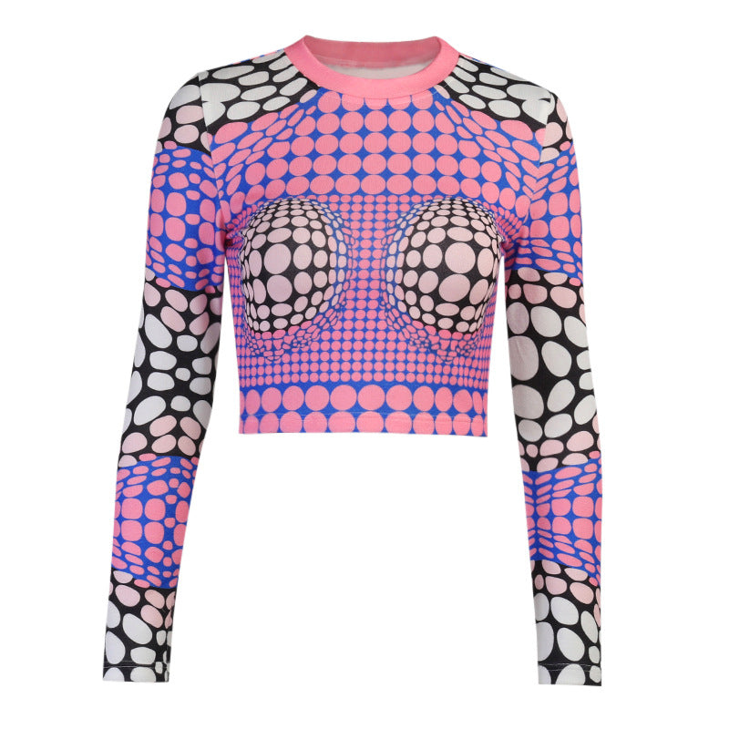 Top De Manga Larga Con Fondo De Punto De Lunares