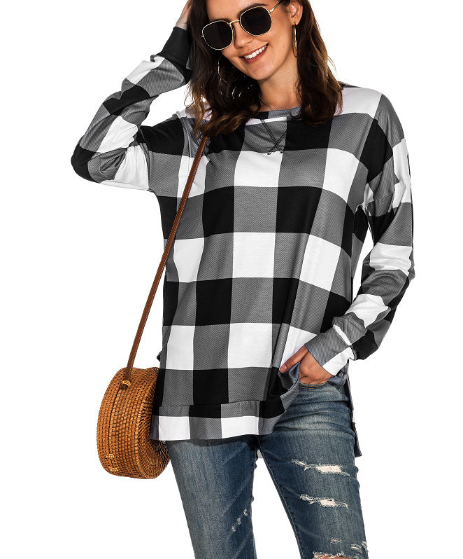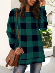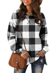 Tops causales de impresión a cuadros de manga larga