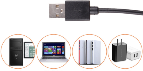 - Alimentado por USB: no necesita batería, el cable USB largo (55 pulgadas) garantiza un alcance suficiente desde su cargador USB