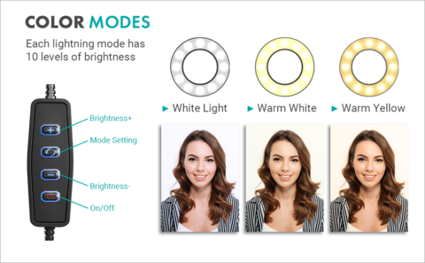 Modo de iluminación de tres colores: ¡finalmente obtenga la iluminación perfecta que ha estado buscando, manos libres! Con tres modos de iluminación y brillo ajustable de 10 niveles, nuestra luz de estudio ha demostrado que mejora la calidad de todas las fotos y videos.