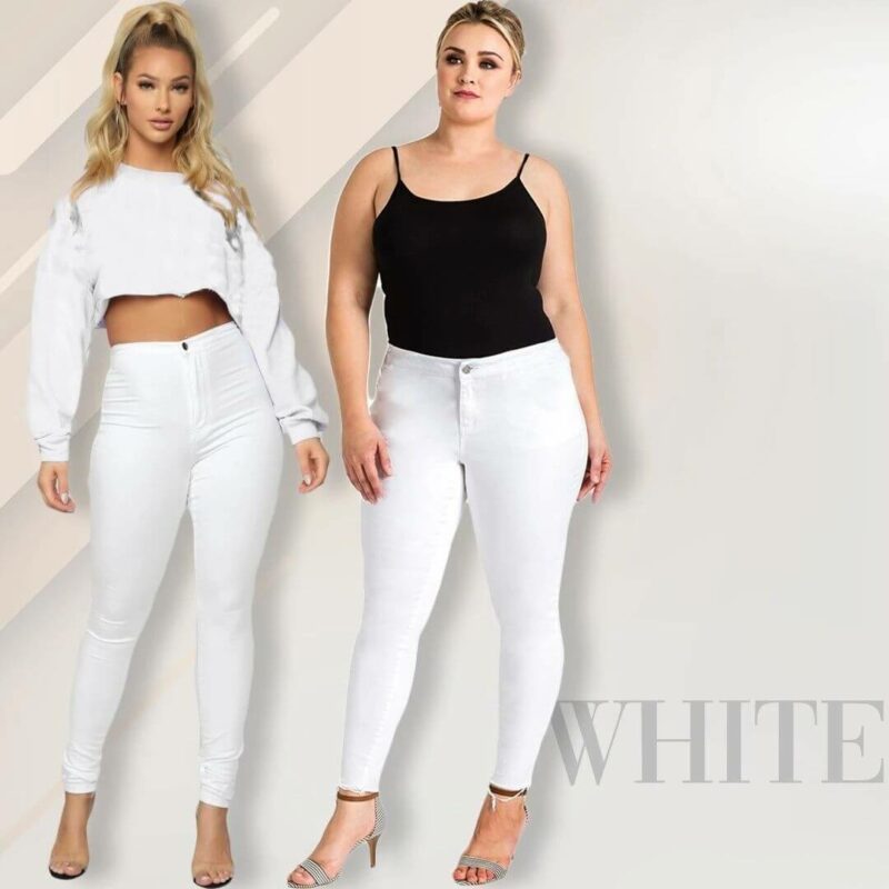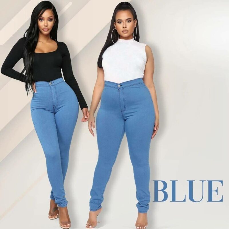 Vaqueros De Mezclilla Elásticos De Cintura Alta Adelgazantes De Talla Grande
