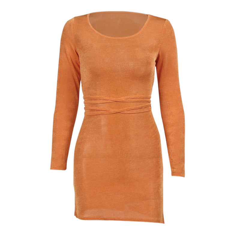 Vestido De Una Pieza Corto Sexy Halter De Manga Larga Con Cordones