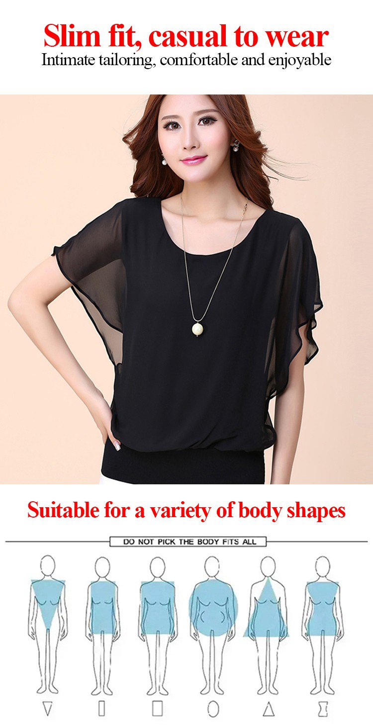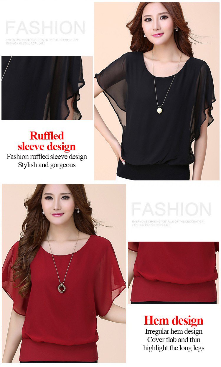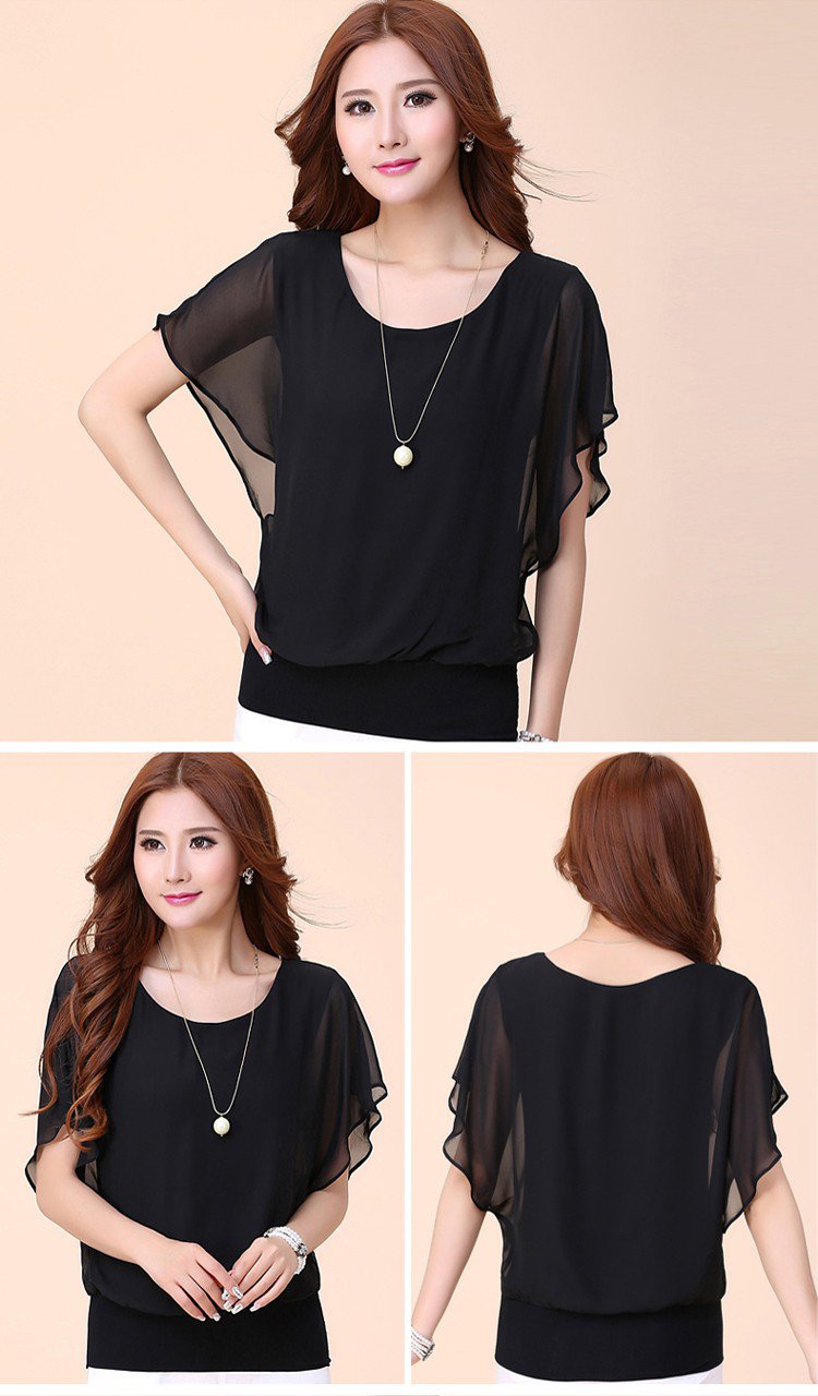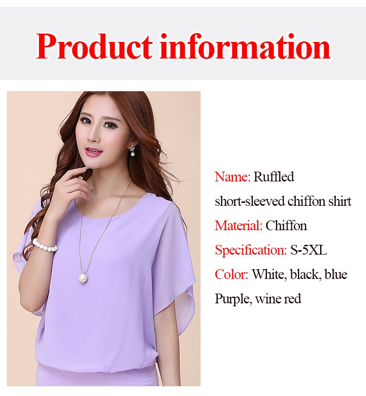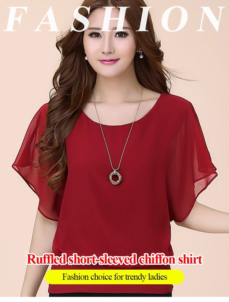 [W-Ropa] Camiseta De Viaje De Gasa De Manga Corta Con Volantes