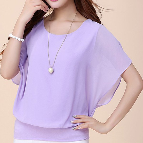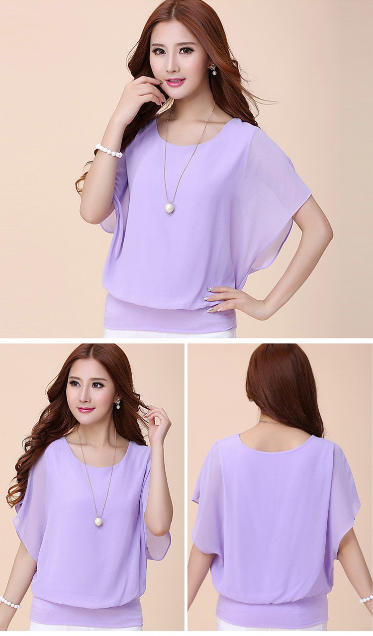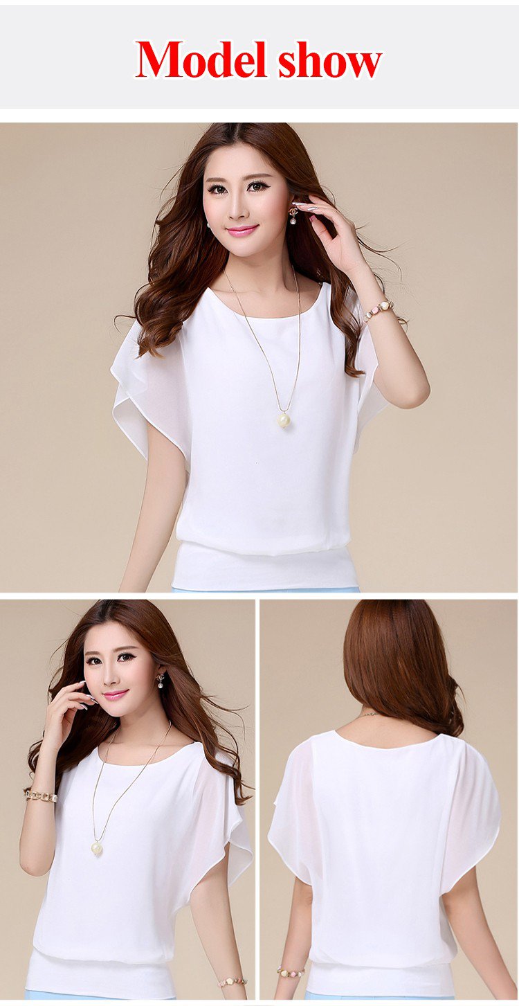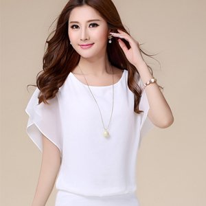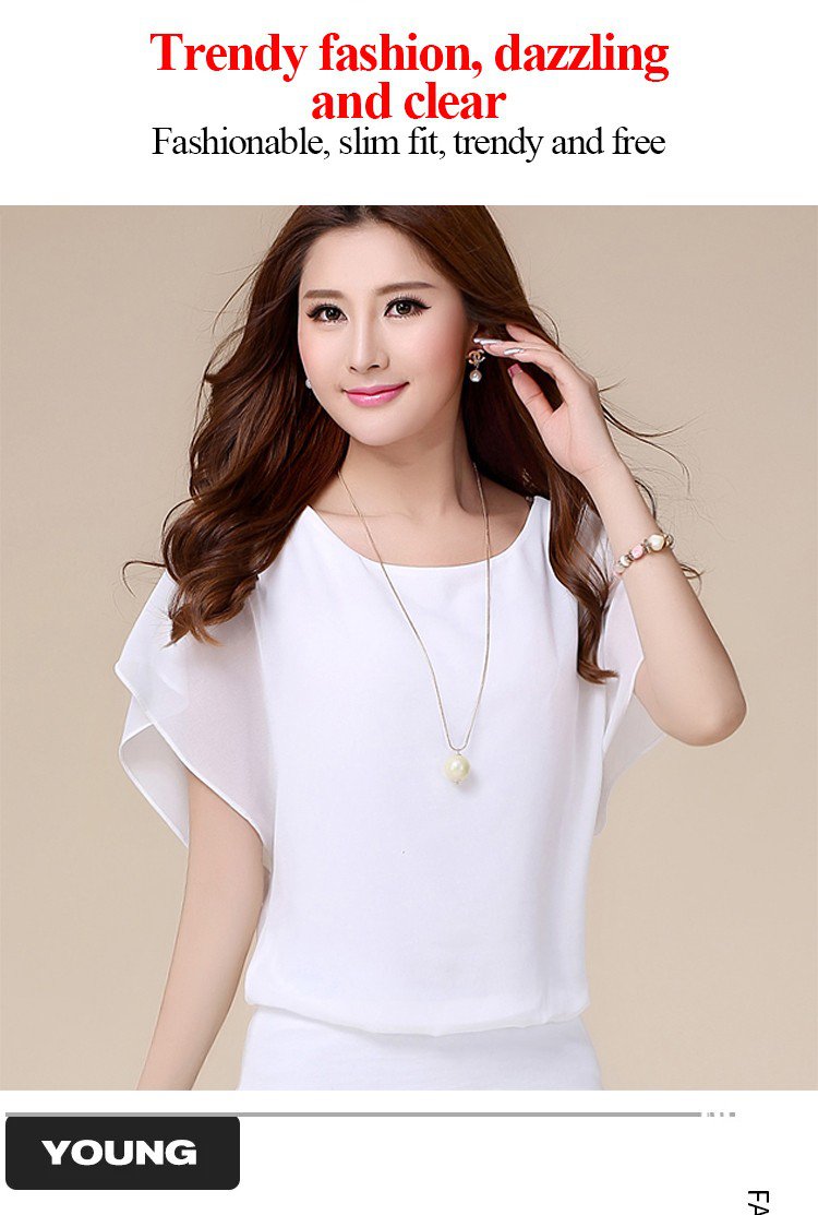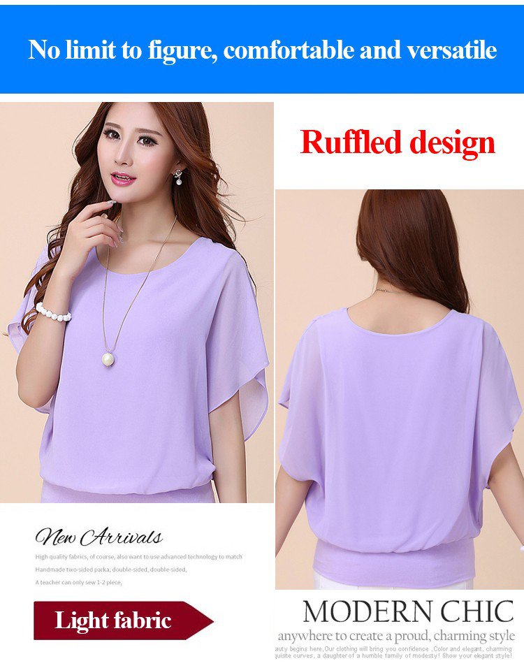 [W-Ropa] Camiseta De Viaje De Gasa De Manga Corta Con Volantes