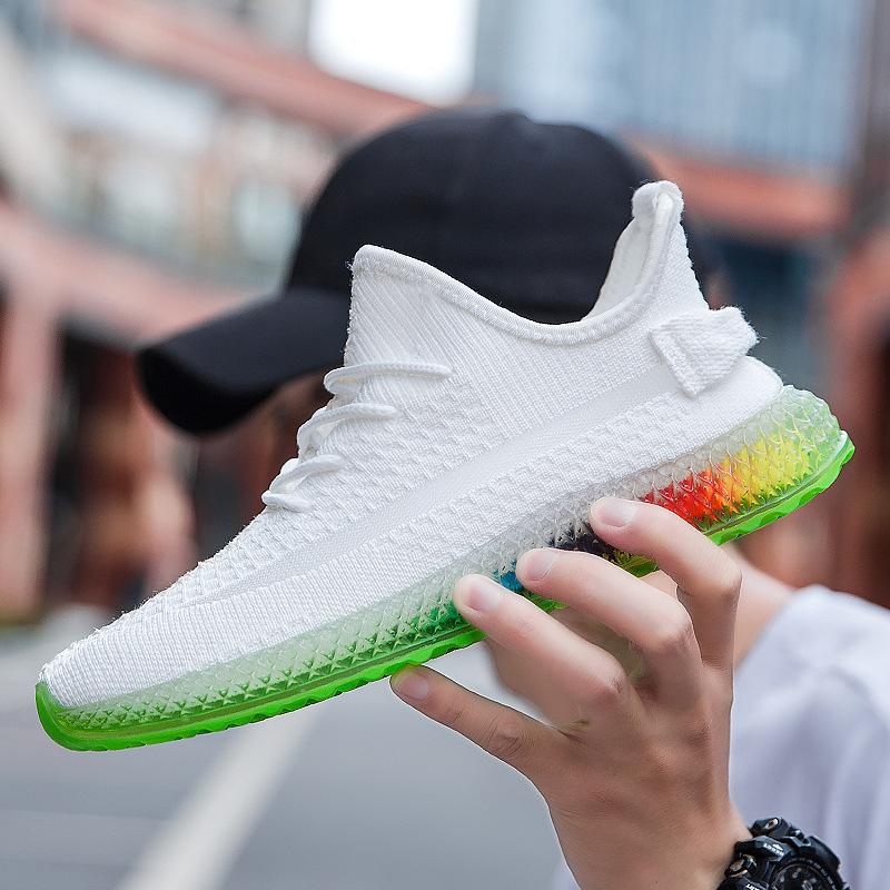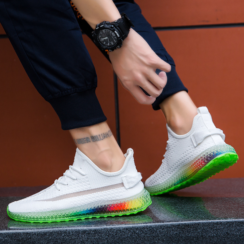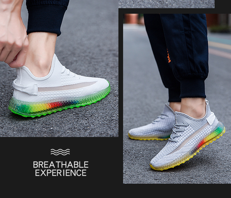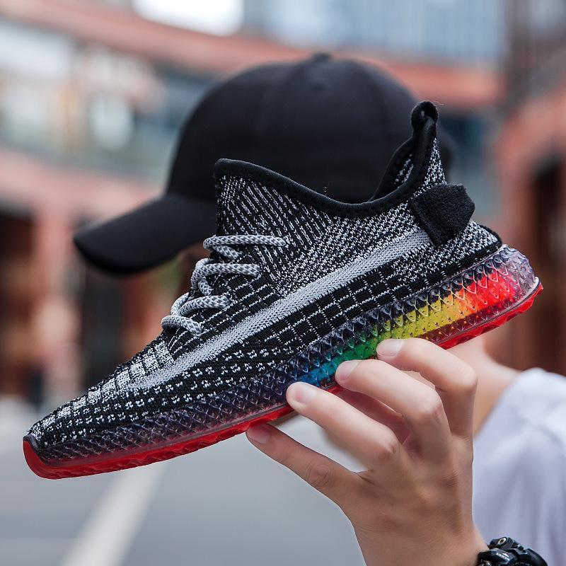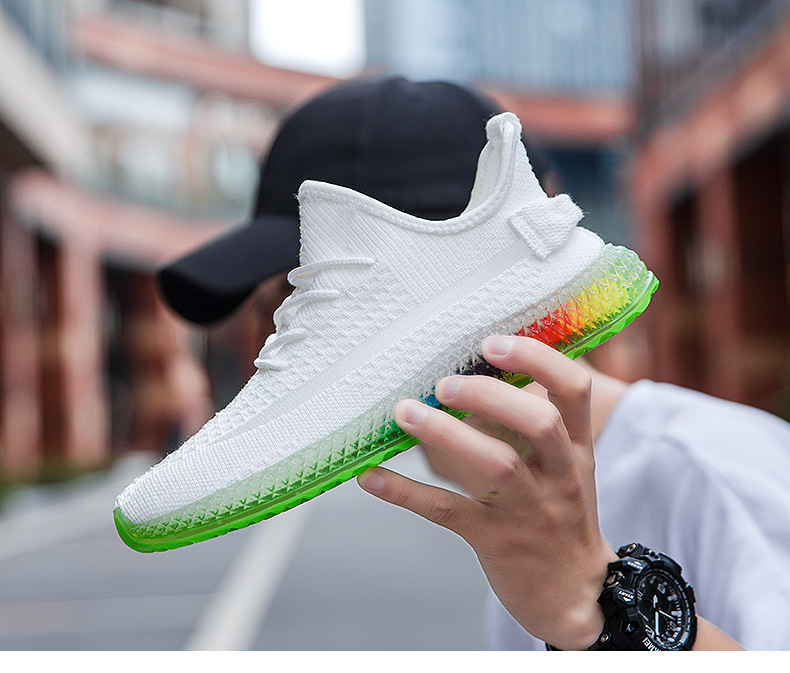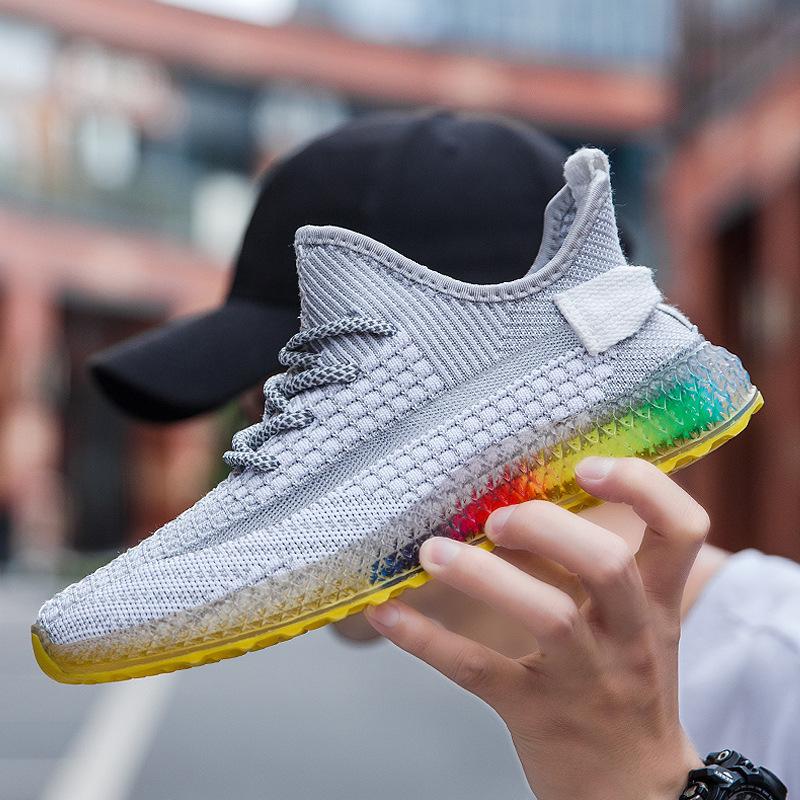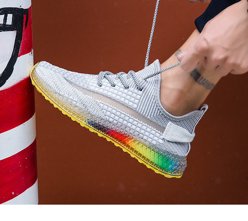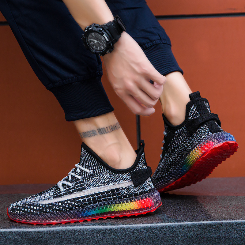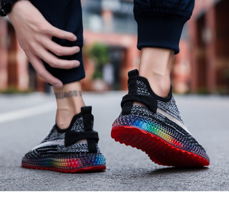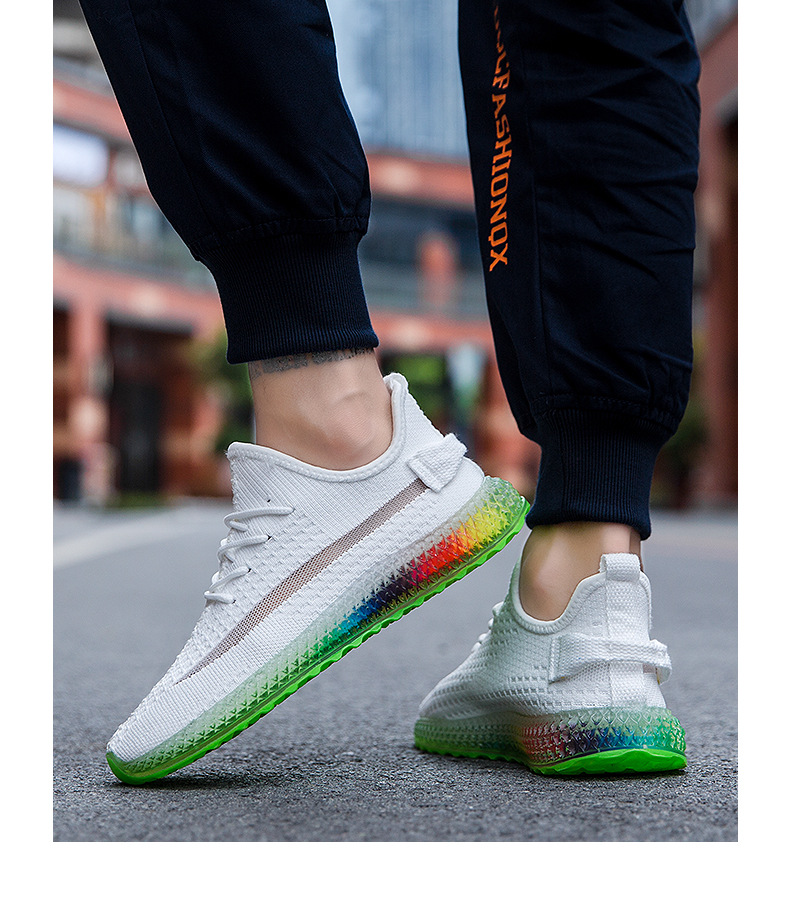 Zapatillas de deporte transpirables de tejido volador estrellado con fondo de arcoíris
