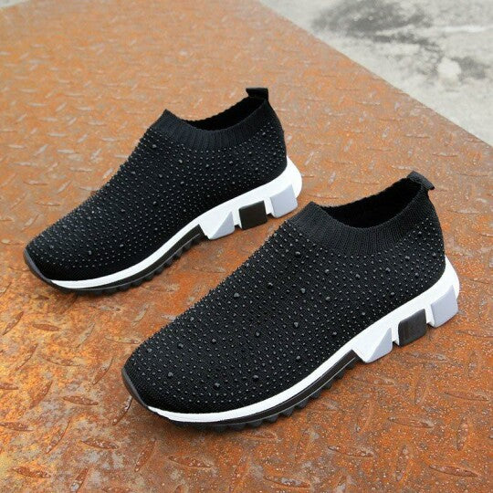 Zapatillas De Mujer Negras Sin Cordones Con Diamantes De Imitación