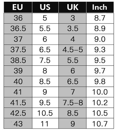 - Elija el tamaño del zapato de acuerdo con la longitud del pie (talón) y el ancho del pie.