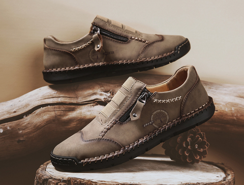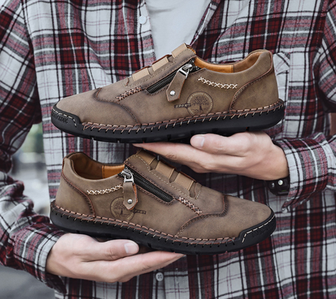 Zapatos casuales de cuero de microfibra con costuras a mano con cremallera lateral