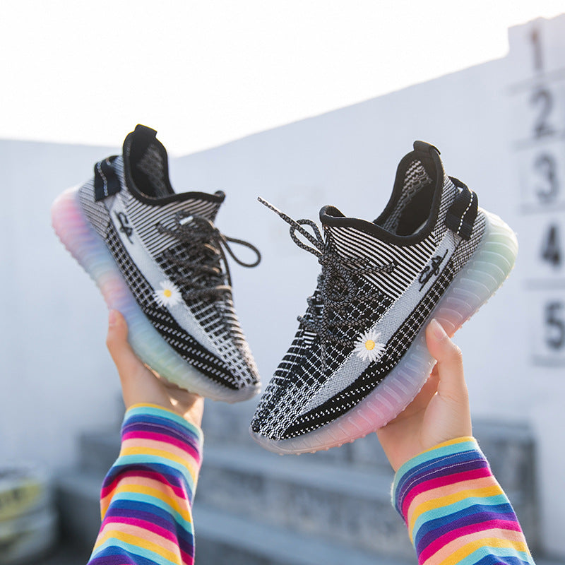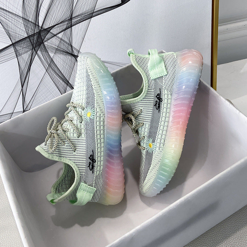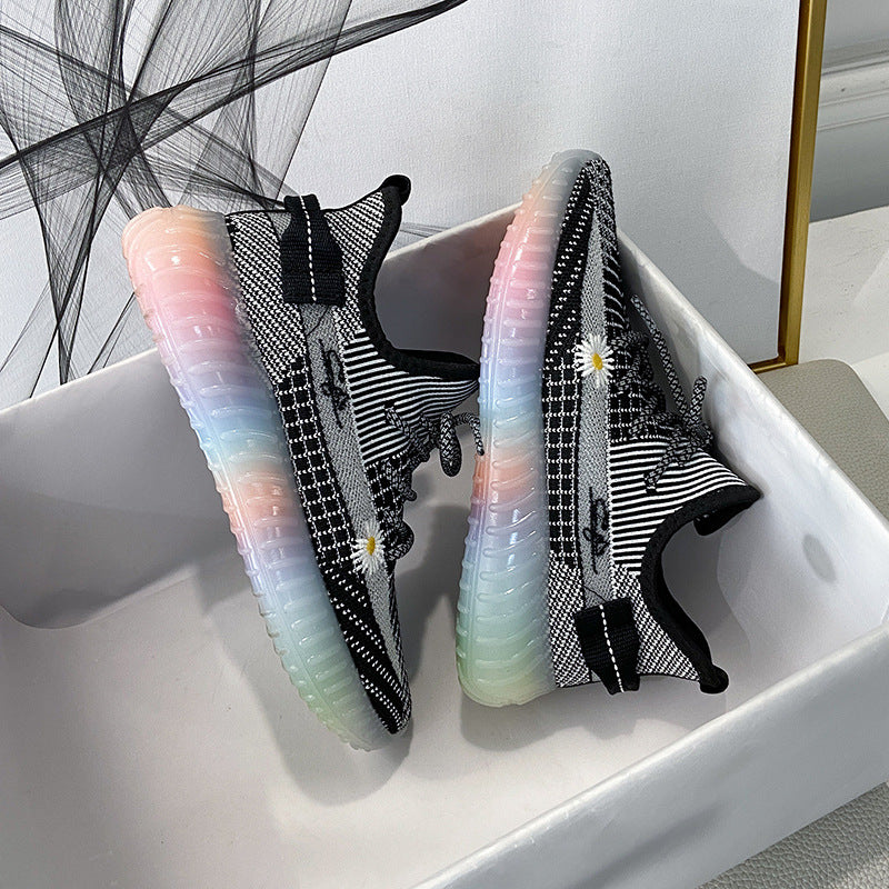 [W-Zapato] Zapatos De Coco Tejidos Voladores Zapatos De Gelatina De Arco Iris Transpirables