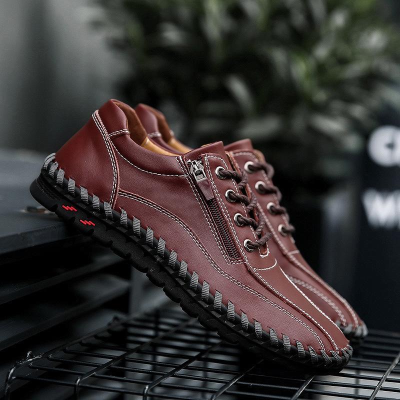 Zapatos de cuero hechos a mano de piel con cordones bajos