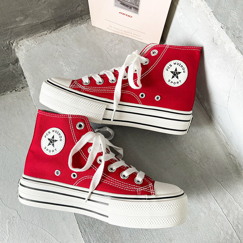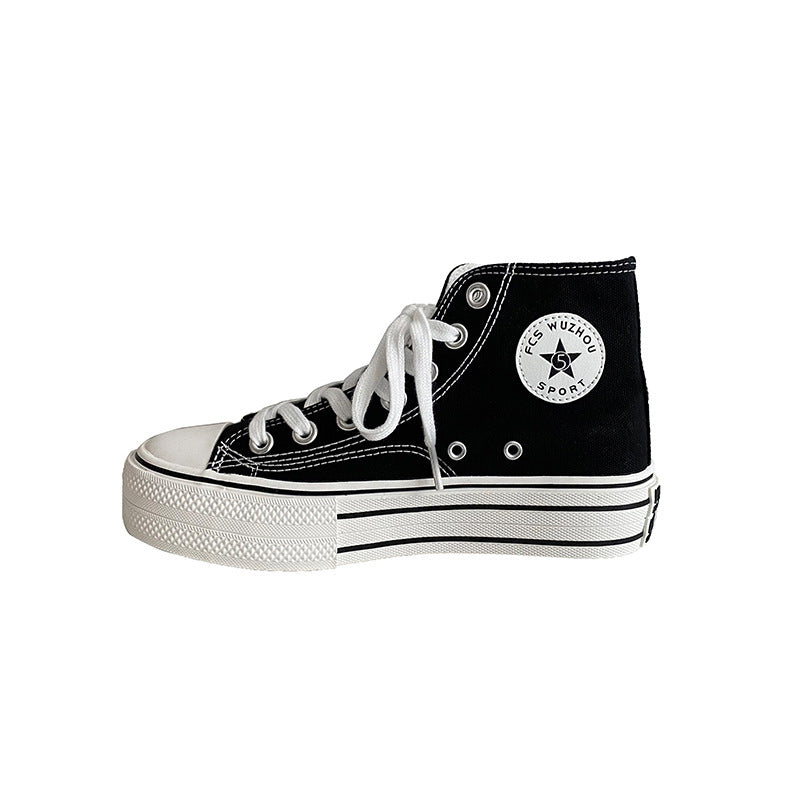 2022春季韩版舒适厚底高帮女鞋百搭INS帆布学生鞋时尚板鞋