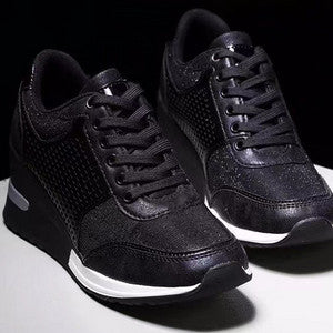 [W-Zapato] Zapatos De Mujer De Encaje Delantero Con Malla De Cuña De Ocio De Cabeza Redonda En Verano