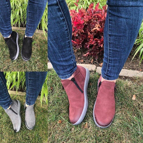 Zapatos De Mujer Retro De Cabeza Redonda Con Fondo Plano Y Doble Cremallera